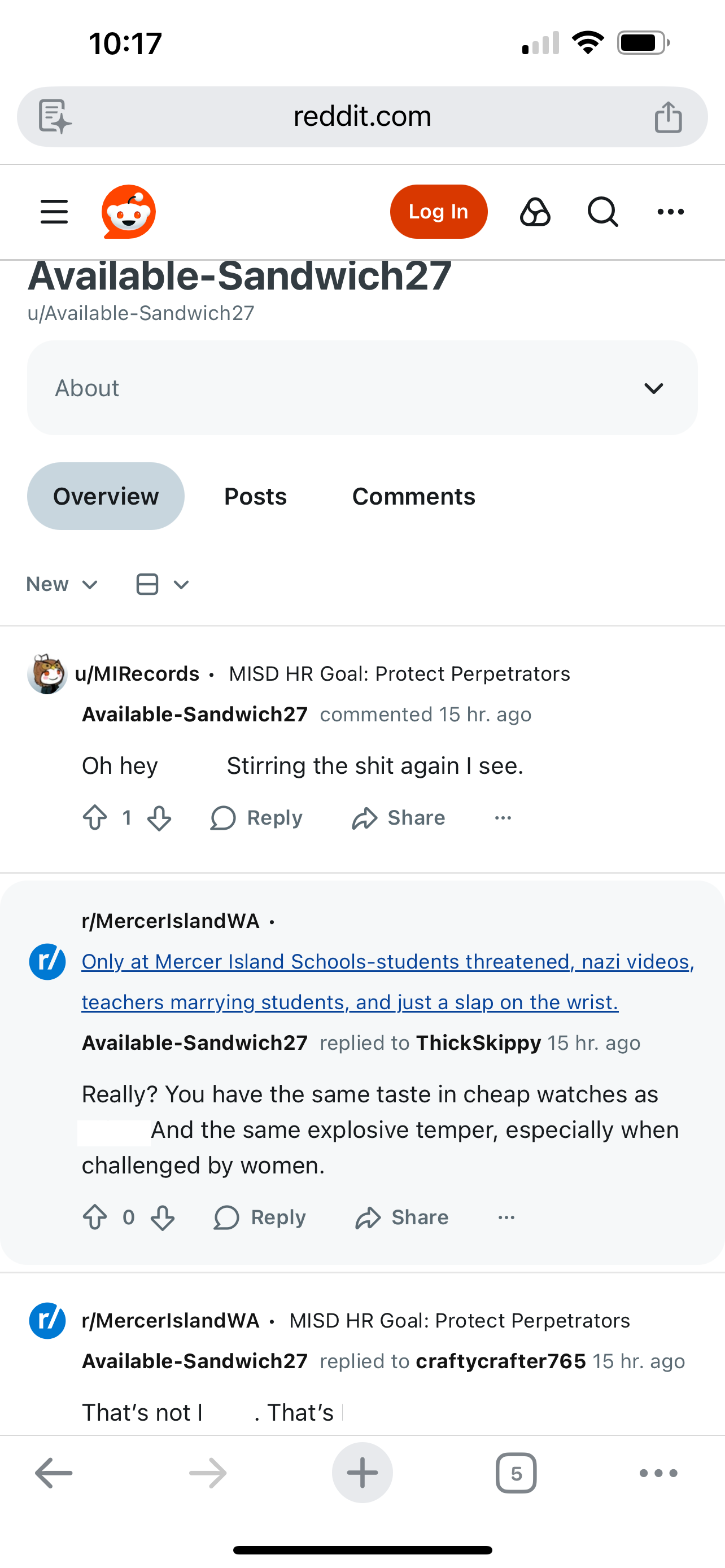 Two Reddit accounts, both about two weeks old, suddenly jumped into Mercer Island discussions.